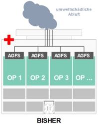 Die Grafiken zeigen schematisch die Jetztsituation bzw. die angestrebte Funktionsweise der Filtertechnik.
